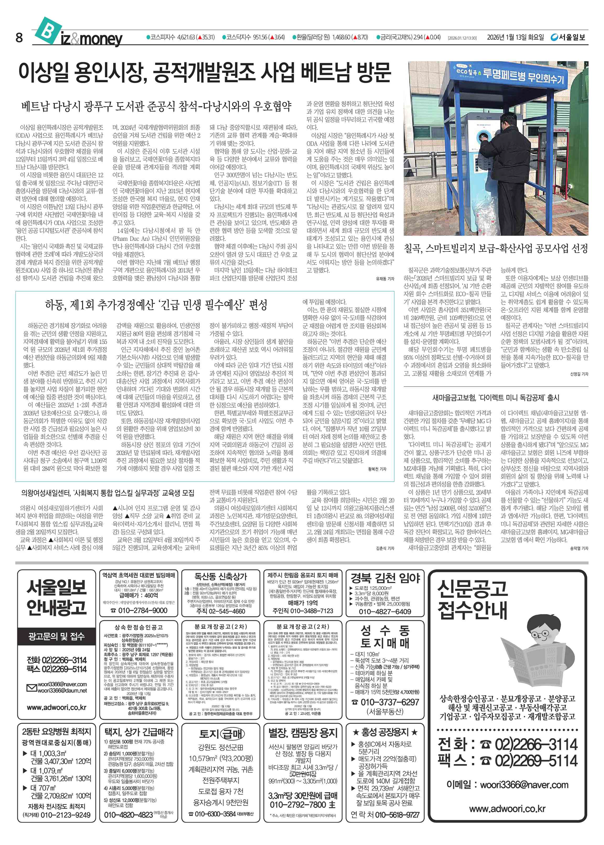 2026년 1월 13일(화요일) 서울일보 신문공고