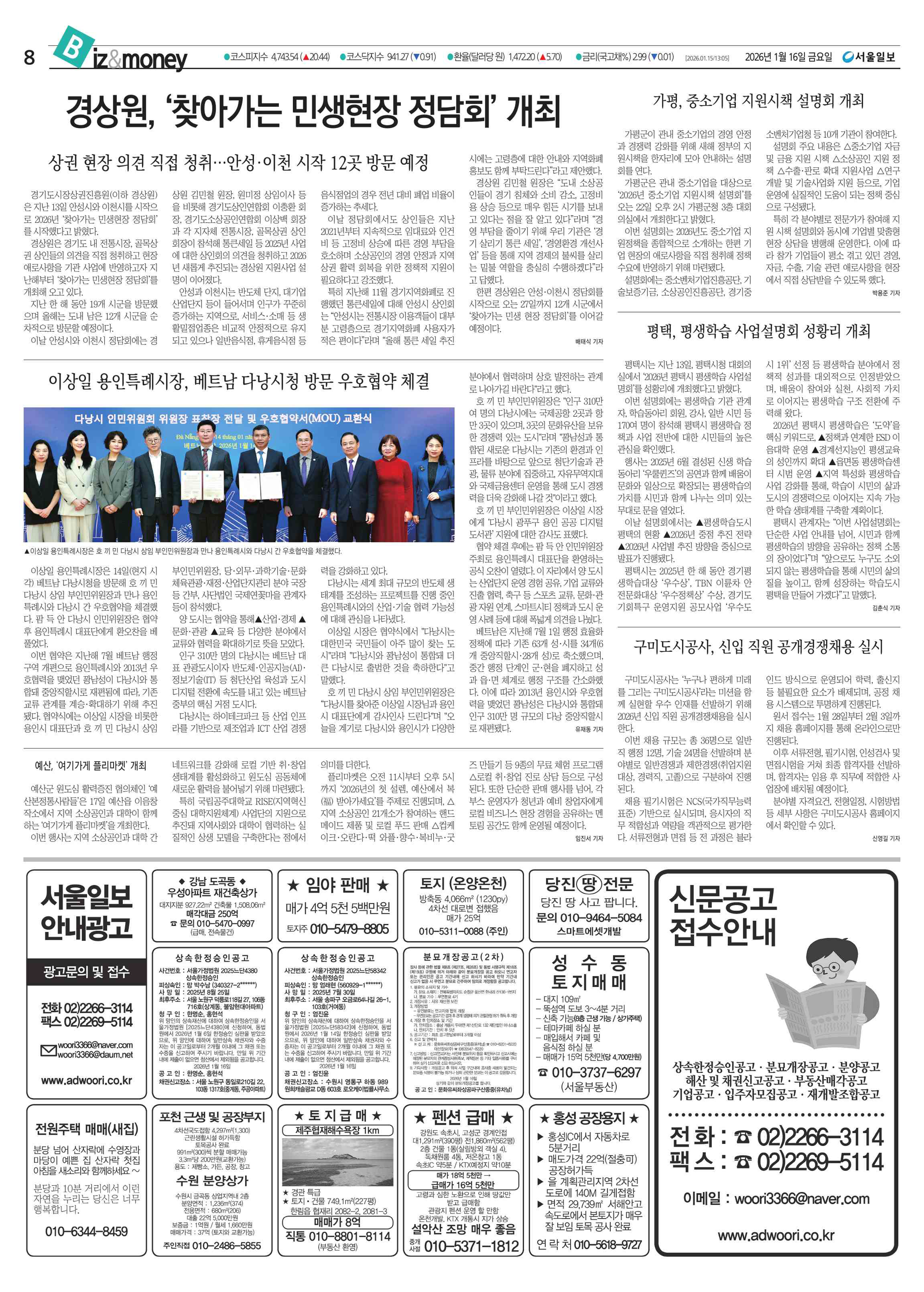 2026년 1월 15일(목요일) 서울일보 신문공고